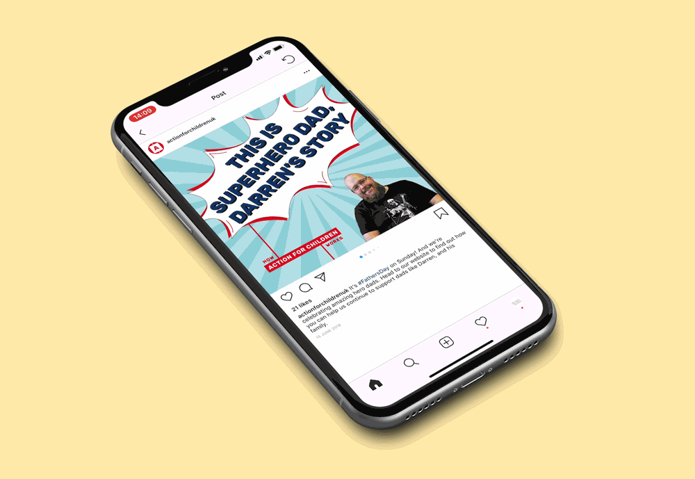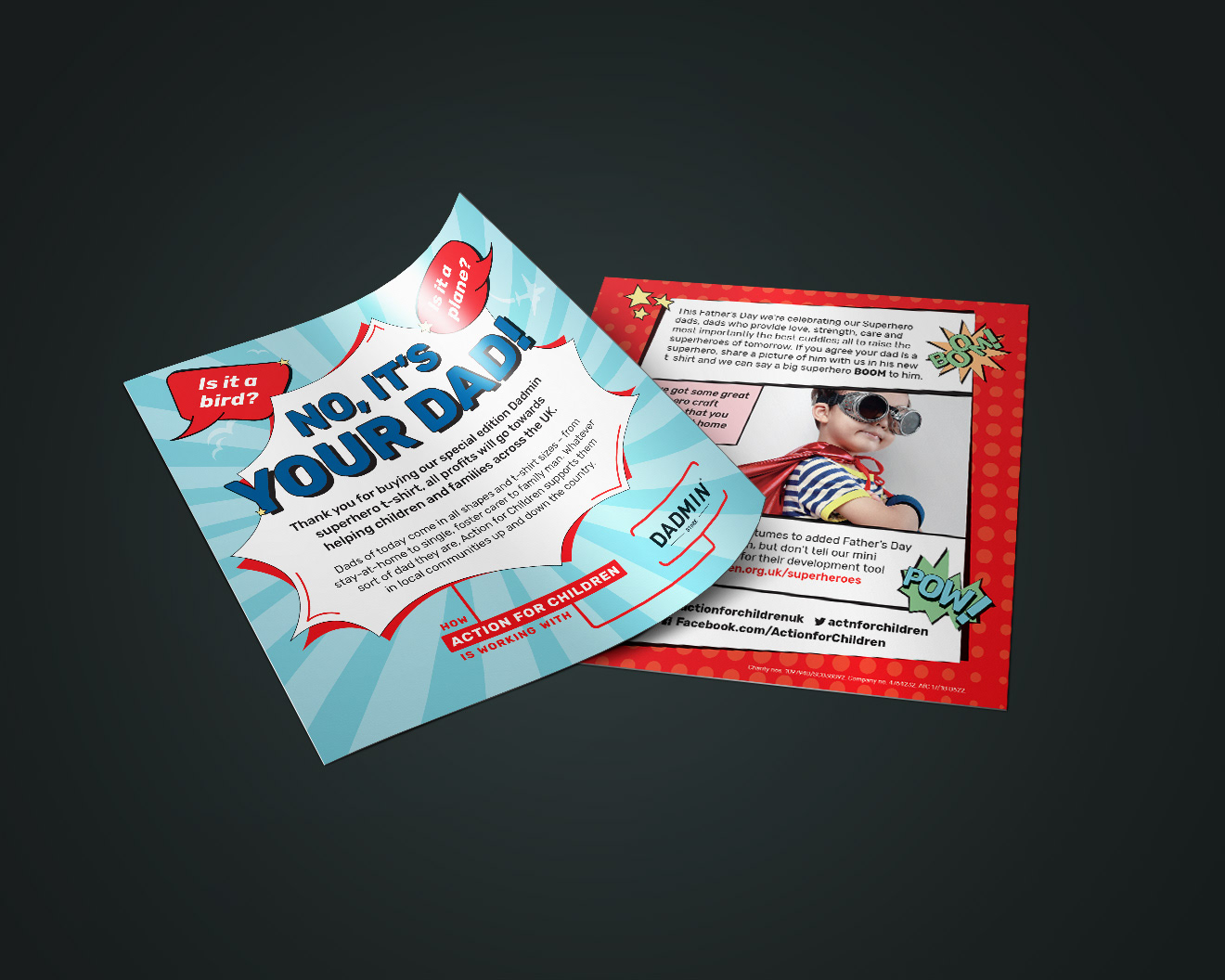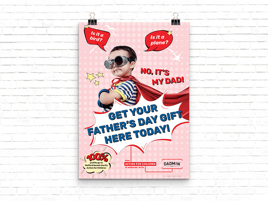 Design and creative of 'Superhero Dad's' Fathers Day campaign for Action for Children in partnership with Dadmin.