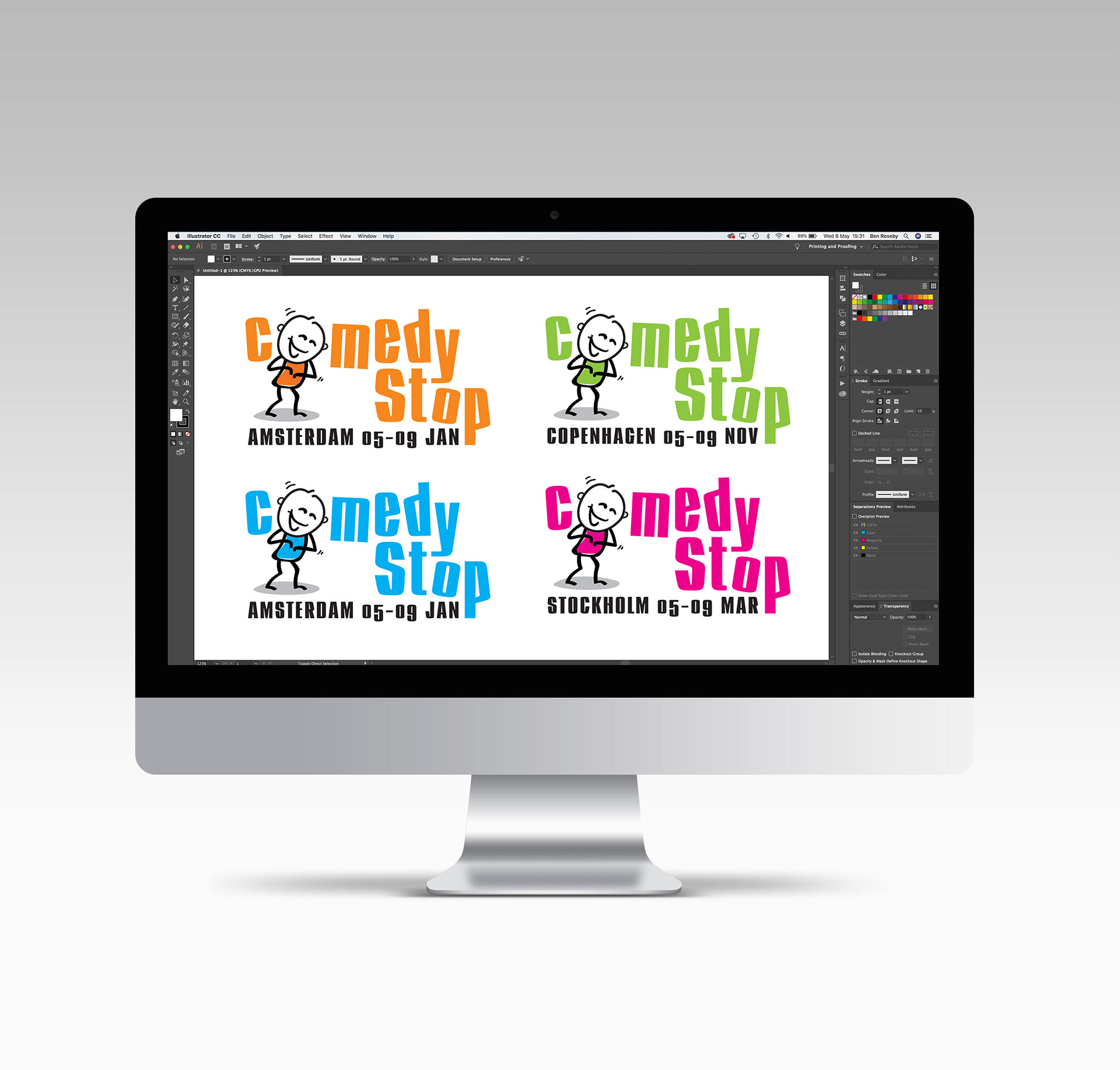 Brand identity for a new European Comedy Festival launching in 6 cities across Europe. The task was to make it fit within the comedy festival world but of course stand aside - that's where 'Little Laughing Anna' comes in!
